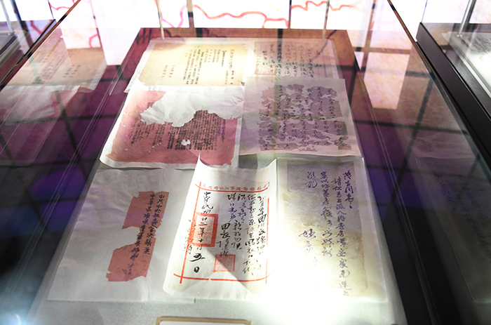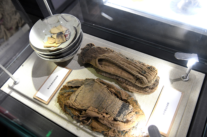 图为游击队使用过的瓷碗和红军穿过的布鞋