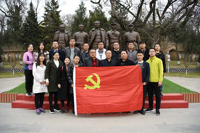 公司党员、入党积极分子在枣园五大书记雕像前合影留念