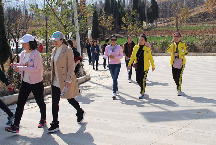 大伙儿身着运动春装,步态轻盈,本着友谊第一,比赛第二的原则,一路相互鼓劲打气,气氛融洽,与金凤山亮眼的自然风光动静相宜、对映成趣。