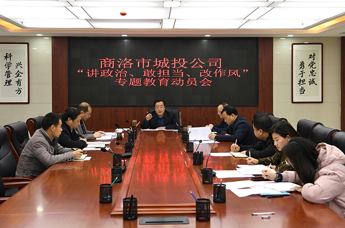 为了深入学习贯彻习近平总书记关于秦岭北麓违建别墅问题的重要指示批示精神,巩固和拓展专项整治成效,推动全面从严治党向纵深发展,按照市委统一安排部署及市国资委党委有关事项的通知,12月21日上午,市城投公司召开“讲政治、敢担当、改作风”专题教育动员会议。会议由总经理叶春祥主持,市城投公司班子成员及党群部同志参会。