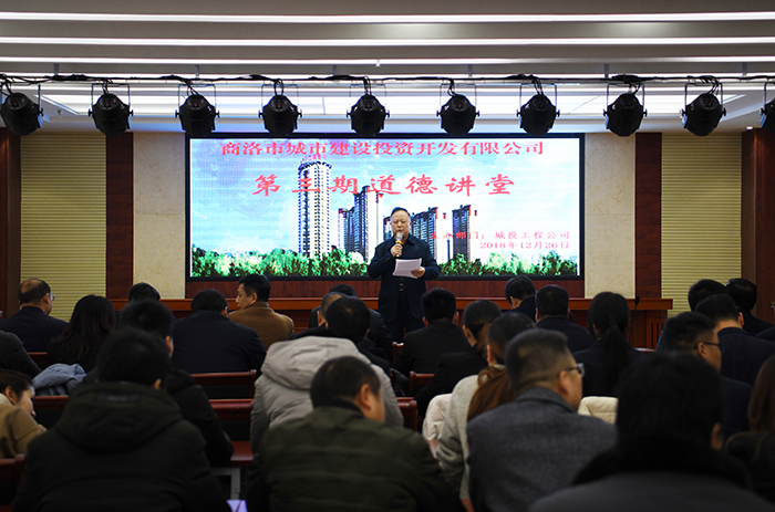 12月26日下午,市城投公司在城投大厦5楼会议室举行第三期道德讲堂暨商洛市“最美城投人”表彰大会。本次活动由市城投公司总经理叶春祥同志主持,共分为两项内容:第一项由城投工程公司组织开展主题为“仰诚实守信之风尚、筑城投辉煌之明天”第三期道德讲堂;第二项对商洛市“最美城投人”表彰颁奖。