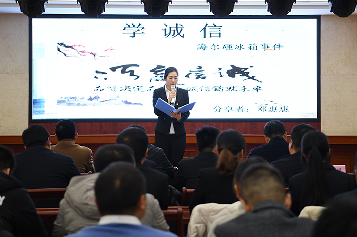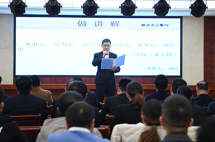 诚信是做人的根本,是社会的推动力。人无诚信不立、业无诚信不兴、家无诚信不和、国无诚信不强。做人、就业、持家、从政都应该讲求诚信。诚信是中华民族的传统美德,是公民道德的基石,是对每个人最起码的道德要求;诚信也是市场经济的本质属性,企业宝贵的无形财产,社会和谐的纽带。由市城投工程公司组织开展的第三期道德讲堂主题为 “仰诚实守信之风尚,筑城投辉煌之明天”,共分为学诚信、诵经典、做讲解、谈感想、唱歌曲五个环节。