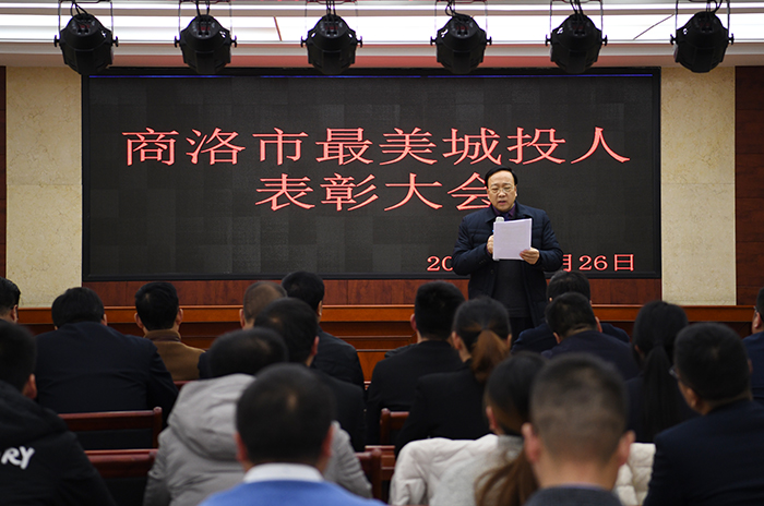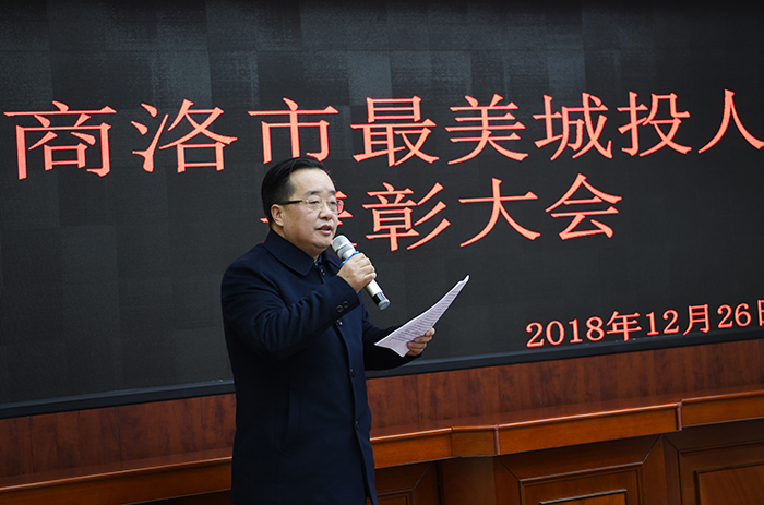 市城投公司董事长曹宝良发表重要讲话:首先向获得商洛市“最美城投人”殊荣的10名员工和获得提名奖的7名员工表示祝贺!向活动的举办单位市委宣传部、市文明办、市创文办、市机关事务局、商洛日报社、商洛广播电视台、商洛新闻网,以及出席颁奖仪式的各位领导、各位嘉宾及工作人员表示感谢!