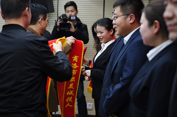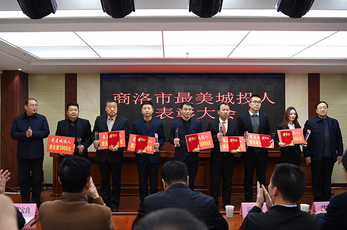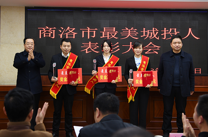市城投公司董事长曹宝良、商洛新闻网董事长黄强为陈灵锋、李丹、田园3位“最美城投人”颁奖。
