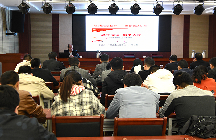 动员会后,公司邀请市委党校杨建军教授为全体员工作了《弘扬宪法精神 维护宪法权威》专题讲授。