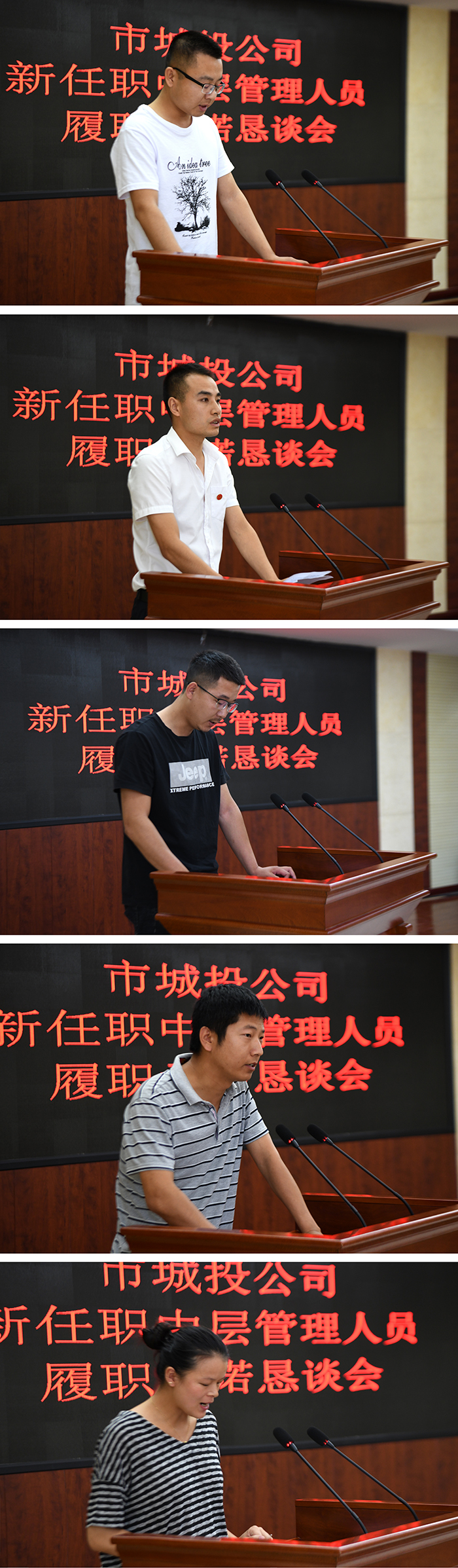 接着,新任职的魏敏、田力、刘琦、李进、罗苹五名中层管理人员分别从政治业务素质的提高、廉洁自律、创新工作等方面进行了履职承诺。