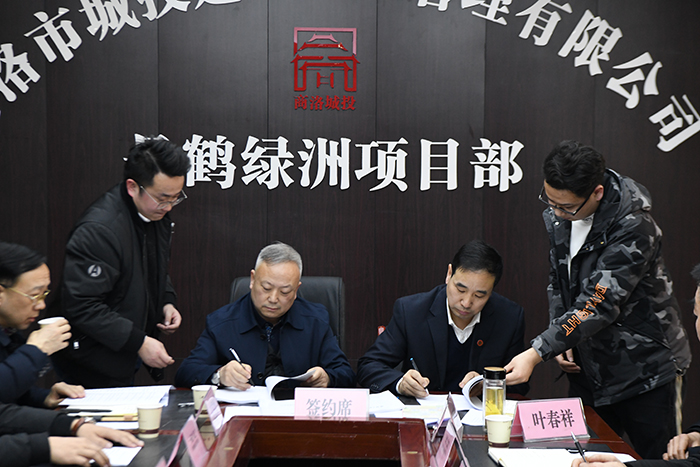 1月17日下午,市城投公司在丹鹤绿洲项目部举行丹鹤绿洲二期工程合同签订暨开工动员会。