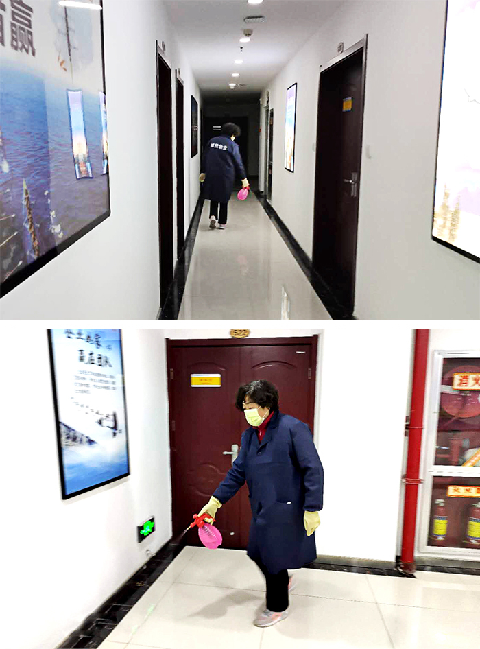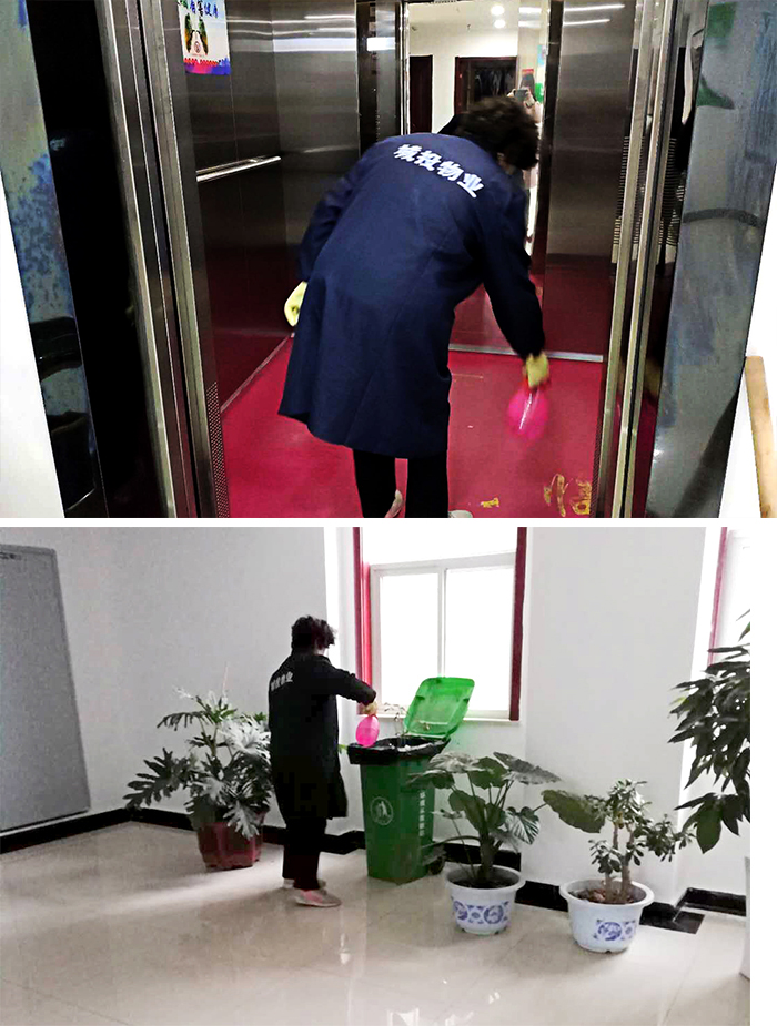 三、全面进行消毒。公司安排专人每天进行3次消毒清洁工作,重点对办公室、电梯间及按钮、门把手、楼梯、卫生间等公共场所及相关物品,进行彻底的清洁、消毒,电梯、过道、办公区定时定点防疫消杀,及时加强口罩、消毒水、体温测量器等防疫用品储备。