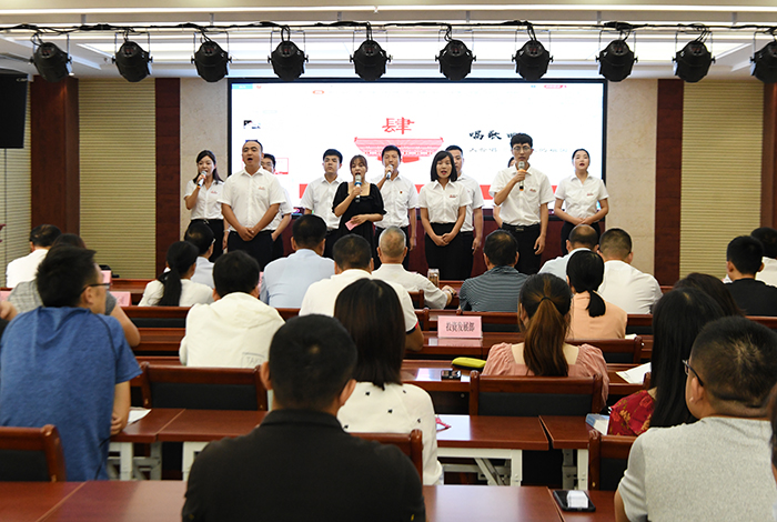 首先进行了丹鹤春晓房产经纪公司承办的“不忘入党初心、勇担时代使命”主题道德讲堂活动,活动分为看短片、诗朗诵、学模范、唱歌曲四个环节。经纪公司员工精心编排的文艺节目形式多样,内容丰富,在向建党99周年献礼的同时,表达了员工们对党的生日的深切祝福。
