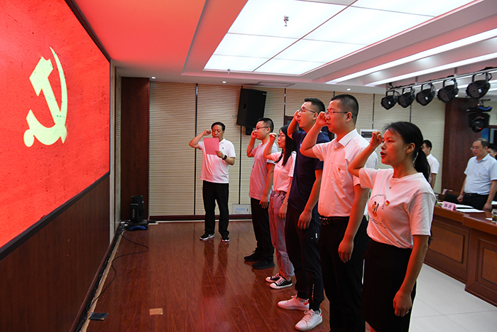 其次举行了优秀党员表彰和新入党预备党员宣誓活动。总支组织委员南春锋同志宣读了市国资委党委关于6名预备党员的批复,总支纪检委员、副总经理陈波同志宣读了党总支关于表彰优秀党员的决定。在总支组织委员南春锋同志的领誓下,6名预备党员面对党旗,庄严宣誓,之后,预备党员代表作了大会表态发言。