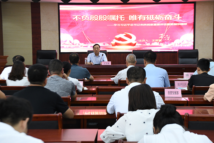 最后,总支副书记、总经理王昱智同志以“不负殷殷嘱托 唯有砥砺奋斗”为题讲了一堂生动的主题党课,重点从三大版块、二十余项内容,深刻阐释习近平总书记来陕视察重要讲话重要指示精神核心本质与时代价值,结合公司当前发展实际,图文并茂地讲授了公司当前面对的机遇与挑战并存,深刻领会习近平总书记讲话精神的重要意义,提出要认清形势,正确面对机遇挑战,践行讲话精神,努力开创城投工作新局面。党课内容深入浅出、饱含深意,让在座党员干部深受启发。