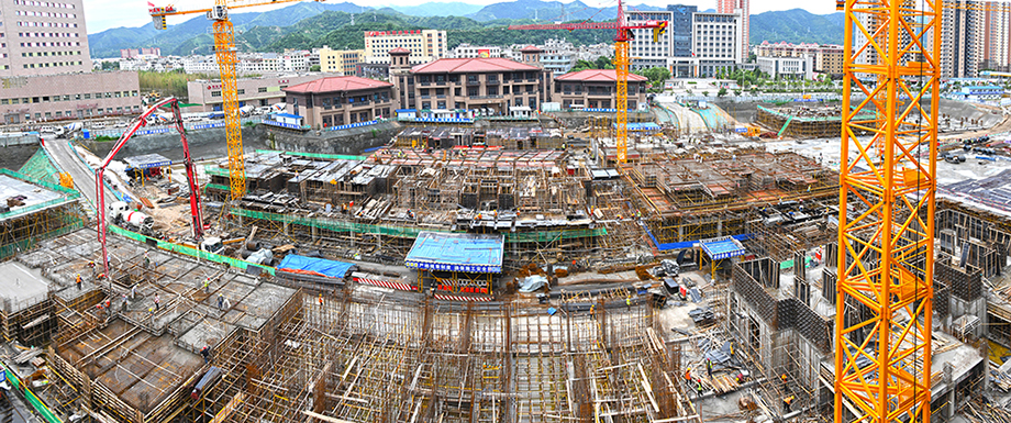 施工现场,运输货车正源源不断地输送着工程材料,工人师傅们不畏酷暑、干劲十足,楼盘地基模样已经清晰可见,一砖一瓦都凝聚着项目建设者的心血和汗水。