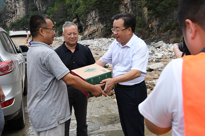 8月13日下午,市国资委党委书记、主任,市工信局党组书记、局长曹宝良带队深入洛南石坡、巡检两镇抢险救灾一线,看望慰问市城投公司防护抢险党员突击队员和施工队员,为他们送去矿泉水、方便面等慰问品。市国资委党委副书记陈静、市城投公司董事长叶春祥一同前往。