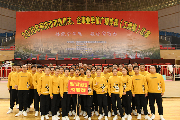 为了积极响应全民健身号召,增强员工体质、丰富员工文体生活,进一步提升团队凝聚力,10月16日,公司组队参加由市创卫工作领导小组、市总工会、市体育局联合举办的“喜迎十四运 展示新商洛”2020年商洛市市直机关、企事业单位广播体操(工间操)比赛。