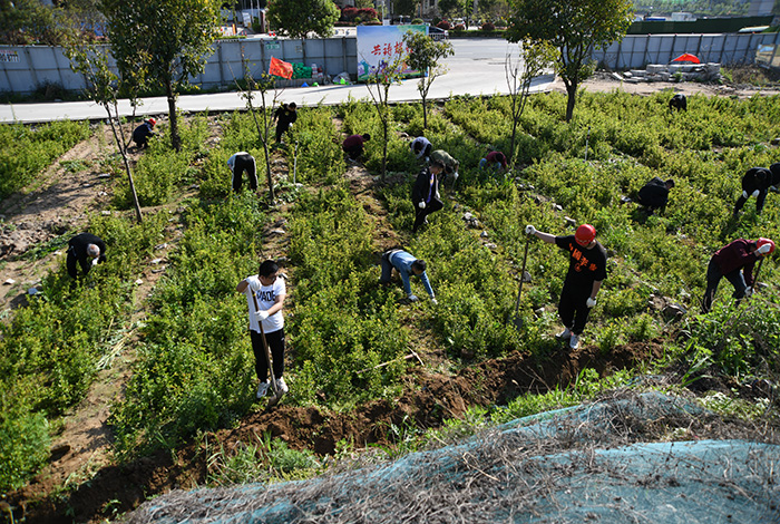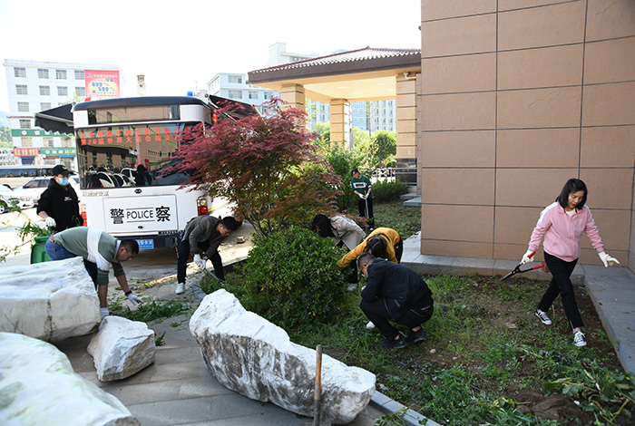 活动现场,大家分工明确、配合默契,或舞剪修剪、或挥锹除草、或施肥灌溉,忙得热火朝天,经过近两个小时的认真劳作,项目部绿化环境面貌焕然一新,焕发盎然生机。
