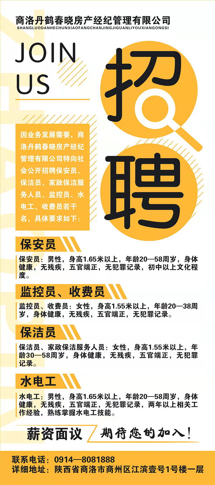 商洛丹鹤春晓房产经纪管理有限公司招聘公告