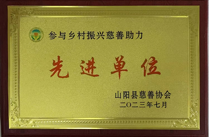 近日,山阳县慈善协会表彰了2022年度参与和支持慈善事业先进集体和先进个人,公司荣获参与乡村振兴慈善助力“先进单位”称号。