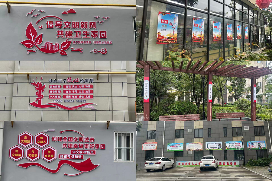 二是强化宣传力度。通过业主群、小区喇叭宣传等多种形式开展宣传活动,营造“大整治、大清扫、大规范”的浓厚氛围,让小区业主充分认识到抓好人居环境卫生的重要性和紧迫性,引导业主树立较强的环保意识,形成良好的卫生习惯。在小区设置“社会主义核心价值观”和“精神文明建设”标识墙,美化小区环境的同时,宣扬精神文明建设,奋力实现物质文明与精神文明的“比翼双飞”。
