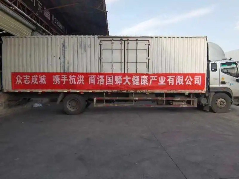 危难时刻显情怀,大灾面前重担当。商洛国蜂大健康产业有限公司联系上下游产业链向灾区捐赠现金10万元,并动员各方捐增救灾物资。7月21日,商洛国蜂公司紧急生产筹备货值近20万元的1100件柠檬蜂蜜水和2000件饮用水共约30余吨救援物资第一时间准备就位,商洛国蜂公司带队同志积极对接相关工作人员,组织并带头搬运救灾物资,将救援物资全部及时转运至红岩寺镇、曹坪镇等受灾严重的乡镇,并发放到受灾群众和救援人员手中。
