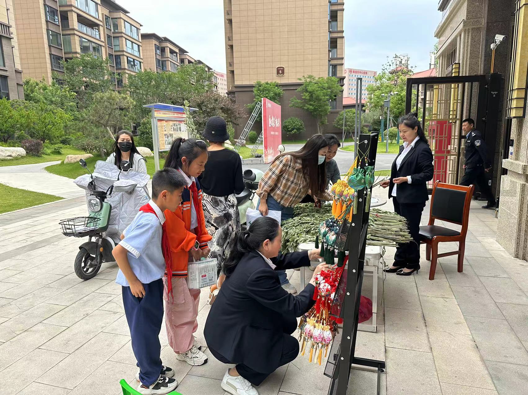 江滨壹号小区、丹鹤绿洲小区、阳光小区活动现场,物业公司党支部提前准备了新鲜的艾草、精美的香包和五彩绳免费发放给业主。业主们在领取到礼品的同时,也感受到了公司党支部的关怀和节日的温馨氛围。