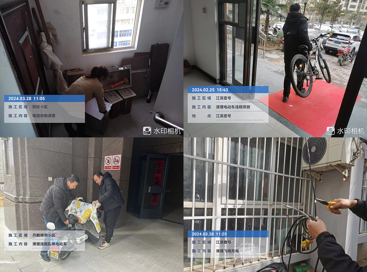 二是加强排查整改,打通安全堵点。市城投物业公司将电动车管理作为一项常态化工作开展,每天安排专人对小区电动车进行全面排查,重点对电动车违规停放、高空飞线充电、堵塞消防通道等进行清理整治,全面推进平安小区建设。针对楼道杂物堆放情况,市城投物业公司开展专项整治,逐栋逐户进行排查清理,保障消防通道畅通无阻,还业主一个舒适、整洁、安全的居住环境。 加强巡查力度,及时发现并处理安全隐患,进一步完善消防设备的配备和布局,在电动自行车棚配备灭火器材,实现公共区域监控、消防设备的全覆盖,加强消防设施设备的检查和维护,确保在管小区公共消防设施、器材符合消防安全使用要求。