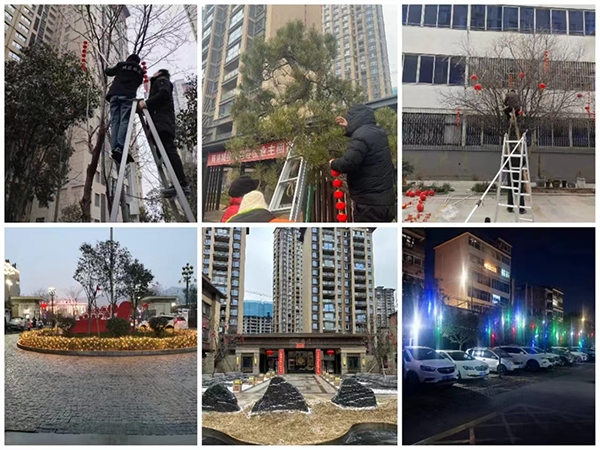 一是开展节日氛围营造活动。挂满灯笼过大年,贴上春联迎新春。2024年春节近在眼前,为了营造出喜庆浓厚的节日氛围,让业主感受到安居乐业、蓬勃向上、繁荣发展的新气象,市城投物业公司组织全体员工对所辖小区的每个角落进行“梳妆打扮”,积极打造充满“年味”的小区。