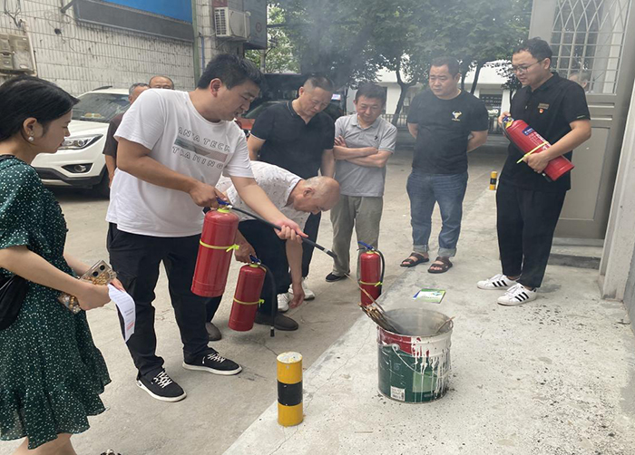 组织委员张星同志认真检查了109号办公楼消防设施、器材,并就灭火器的使用方法为各位租户进行现场演练。