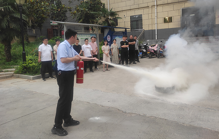 市城投物业党支部组织观看了消防安全警示片,邀请专业消防维保单位详细讲解了灭火器的种类、火灾的分类、灭火器的用途以及灭火器的使用方法,并组织开展了灭火器的实操演练和灭火演习。