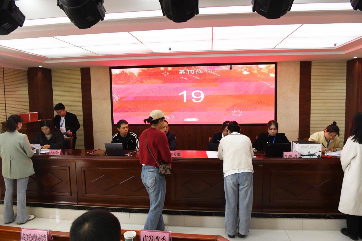 摇号现场严格按照相关规定执行,市城投公司总经理助理魏敏同志主持并宣读《商洛市明珠花园第一批购置型保障房(限价商品房)销售摇号方案》,公证处公证员宣读摇号器具检验结果。在公证监督人员和工作人员的见证指导下,申请人按序号依次上前经身份核查无误后亲手摇号,摇号结果通过大屏幕实时显示,申请人签字确认后生效。整个过程机制透明,流程规范,秩序井然,得到了群众的一致认可。